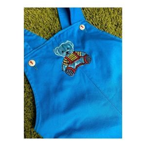 Vintage Sky Blue Teddy Bear Overalls Jumpsuit