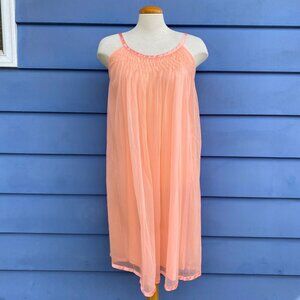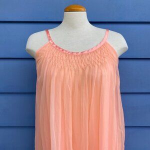 Vintage Sleep Wear Night Gown Lingerie Dress Peachy Pink Nylon SMALL