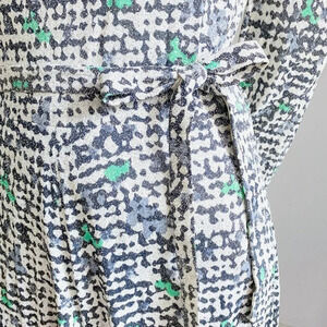 Very pretty slinky polyester fabric. Greys with emerald green accent.