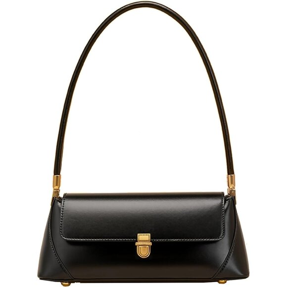 Vintage Small Black Shoulder Bag for Women Zipper Closure and Classic Design