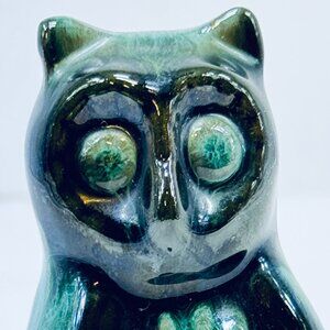 Vintage Small Blue Mountain Owl Ceramic Figurine Glazed Blue and Black