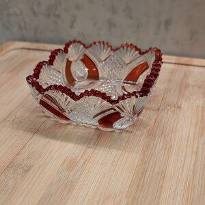 Vintage Small Cranberry Glass Square Ashtray or Candy Nut Trinket Dish