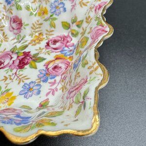 Vintage Small Square Dish Floral Multicoloured Royal Albert Crown England Bone China