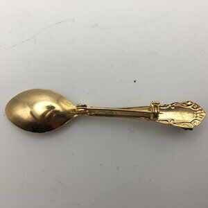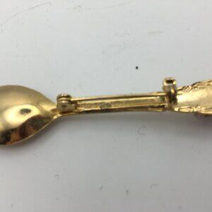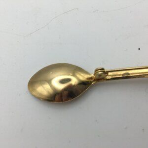 Vintage Small Gold Tone Spoon Pin Brooch Jewelry Amethyst Maple Leaf 2 1/2"