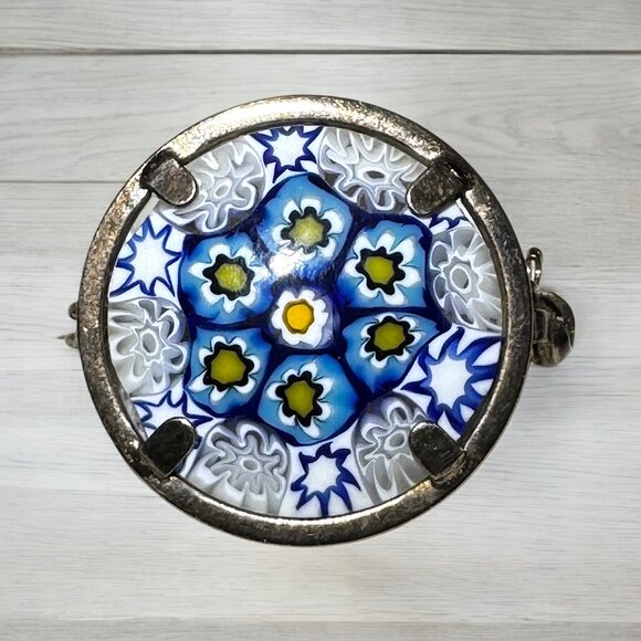 Vintage Small Millefiori Design Pin Brooch Round Collectible