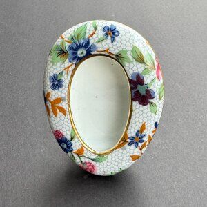 Vintage Small Porcelain Photo Frame Crackle Floral Hand Painted by Bowring Co.
