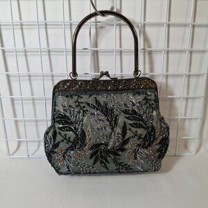 Vintage Viola Collection Tapestry Beaded Evening Purse with Metal Top Handle and Crossbody Chain
