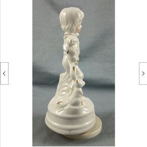 Vintage Small World Musical Spinning Ceramic Pearlescent White Gold Boy Figurine