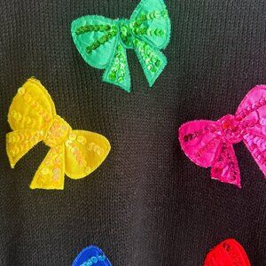 Vintage Smart Set Black Colourful Bow Sequin Holiday Sweater S