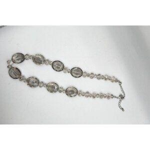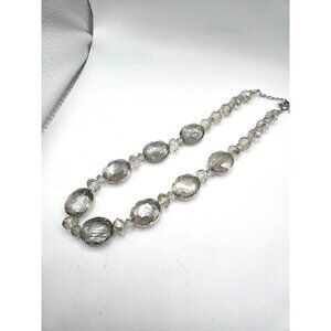 Vintage Smoky Crystal Bead Necklace Faceted Oval Glass Beads Silvertone 20"