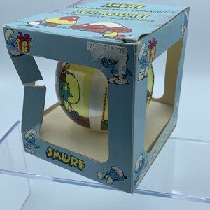 Celebrate the holidays with this delightful vintage Smurf Christmas ornament! Featuring a charming holiday design with a Smurf and festive decorations, this unbreakable ornament is a nostalgic addition to any tree. It comes in its original box, adding to its collectible appeal. Perfect for Smurf fans and vintage holiday decor enthusiasts!