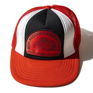 Vintage Snapback Softball Hat Cap Mesh Slowpitch 80's Red White Black