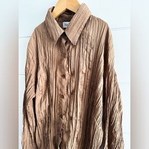 Vintage “Snazzie” Bronze Long Sleeve Button down Crinkle Top - Size XL