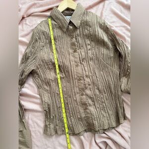 A 90’s light weight button front top made from a crinkle fabric, long sleeves with button cuffs.
