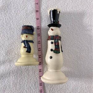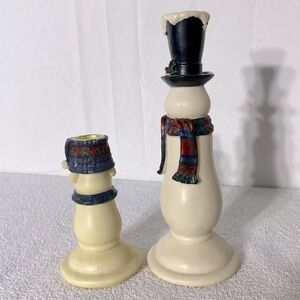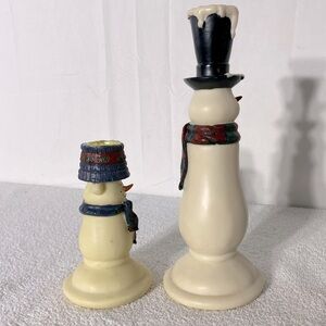 Vintage Snowmen Couple Candlesticks Candle Holders Winter Christmas Festive