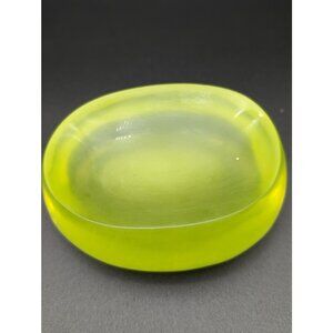 A unique vintage era soap dish featuring a lovely yellow / green transparent hew and made from a solid and sturdy plastic mold.