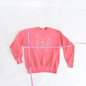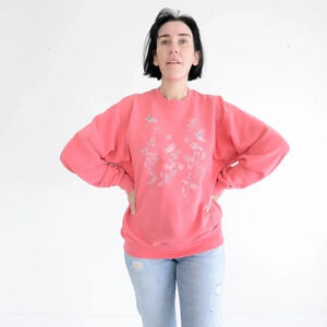 Vintage Soffe Sweats Made in USA Pink w Floral & Bird Design Crewneck Sweater L