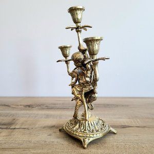 Vintage Solid Brass Candleholder with Cherub Figure.