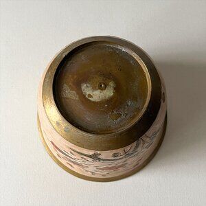 Vintage Solid Brass Floral Planter Hand Painted Flower Pot Rustic Boho Decor