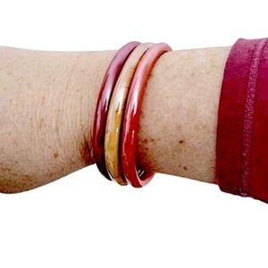 Vintage Solid & Variegated Red Mustard Orange Glass Bangle Bracelets 3 pcs