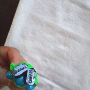 One has green hair in pink dress, white t-shirt, blue shoes.  Superhero troll has yellow hair, green cape, black body with some blue.  Very good condition.