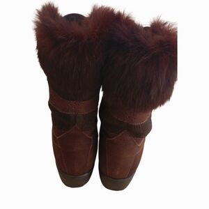 Vintage Sorel red and brown women's size 6 winter lace up boots. Made with real fur, suede, and leather.
