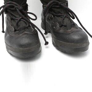 Vintage Sorel Snowfox TR Lined Winter Boots by Kaufman Canada are a classic choice for enduring winter weather in style. Crafted from durable leather and robust rubber, these black boots fuse fashion with functionality seamlessly. The lace-up vamp ensures a secure and customizable fit, while the plush lining keeps your feet warm and cozy in the coldest conditions. Designed with a lug sole for superior traction on slippery surfaces, these timeless boots are perfect for both urban commutes and outdoor adventures.