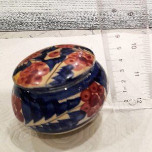 Vintage Sorrento Ceramic Hand Painted Floral Footed Jar. There is a chip on the lid. Please see photos for more details.