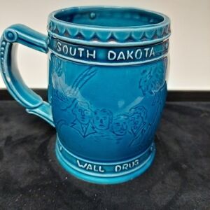 Vintage* South Dakota Wall Drug Souvenir Ceramic Mug. Note some minor chips as shown in pictures. Stands approx 5" tall with approx 3.25" mouth. Made in Japan.