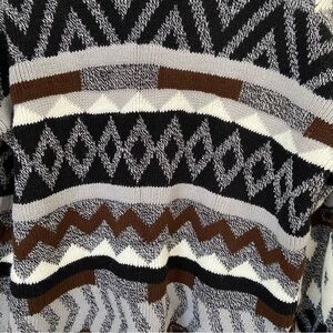 Vintage Southwestern Aztec Tribal Long Line Open Front Knit Cardigan Sweater