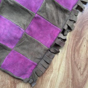 This vintage suede leather patch and fringe bag is made in Spain in the 1970s. It has a cool bohemian style drawstring closure and you can carry it as a shoulder bag or by the leather fringe straps. It has a black fabric lining which is nice and clean. The suede patches have a nice worn patina and softness, with some minor discolourations due to it being vintage.