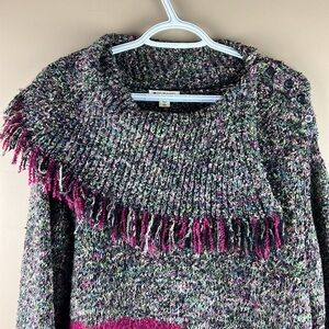 Vintage Spanner Multicolour Slub Knit Sweater with Fringe Neck