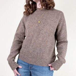 Vintage Speckled 100% Wool Knit Oversized Sweater Minimalist Old Money Academia