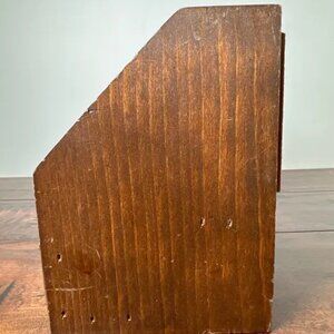 Organize your kitchen with this used vintage wooden spices rack, featuring classic brass accents and the word "Spices" inscribed on the front. The rack has a charming, rustic appeal, perfect for adding a touch of nostalgia to your cooking space. Please note its used condition, which adds to its unique character.