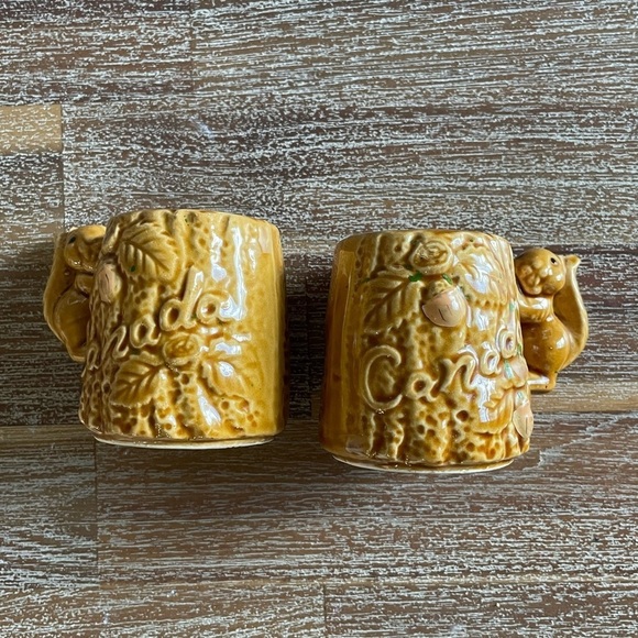 Vintage Squirrel climbing tree Canada ceramic Salt & Pepper shakers.
