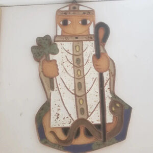 Vintage St Andrews's Abby Saint Patrick and Saint Martha Pottery Wall Plaques.