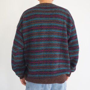 This Vintage St. John’s Bay wool sweater brings together the warmth, texture, and character that define true cold-weather classics. With its rich brown base and stripes of teal, navy, and red, it has that distinct Retro 80s/90s aesthetic blended with a rugged Cabincore feel, perfect for cooler days when you want something cozy with personality. The 100% wool construction adds natural insulation and gives the knit a slightly rustic handfeel that layers beautifully under outerwear or stands strong on its own.