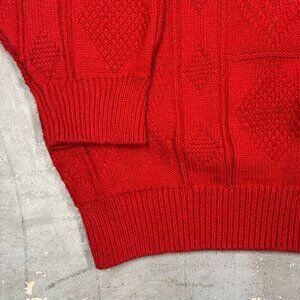 Vintage St Michael Knit Sweater Red Crewneck Made in UK Geometric Large