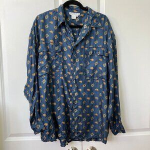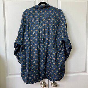 Vintage St. Michael Silk Shirt Mens L Hunting Equestrian Novelty Print Navy Blue