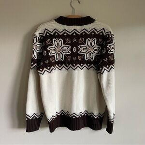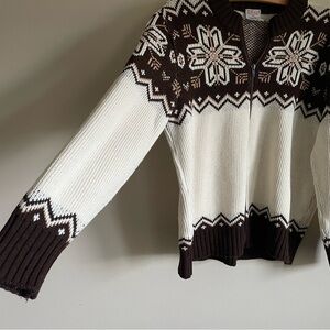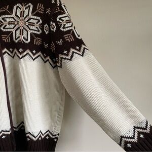Vintage St Michael Zip Up Knit Cardigan Sweater UK Snowflake Brown Cream Mens