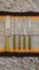 Set of 4 art deco knifes and 1 cake knife with olive green bakelite handle,