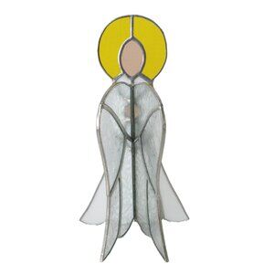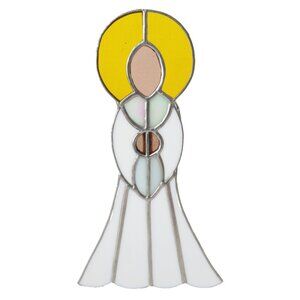 Vintage Stained Glass Angel 3D Standing White Yellow