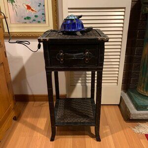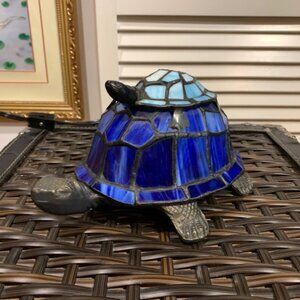 Vintage Stained Glass and Brass Turtle Piggybacking Baby Turtle Table Lamp