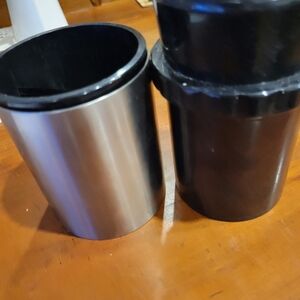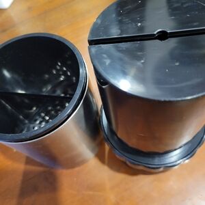 2 pieces as shown fit together the twisting motion grates the cheese for serving or even for cooking. neat piece. 5 3/4" tall