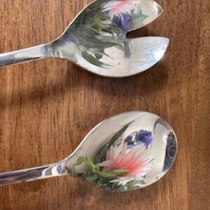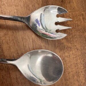 Vintage Stainless Steel Serving Utensil Set Elegant Mixed Pattern Salad Spoons