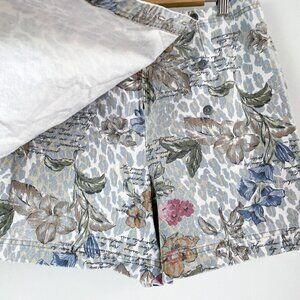 Vintage Stampede Botanical Print Lightweight Denim Shorts Skort M