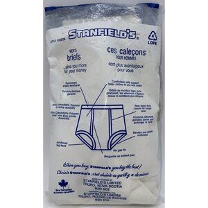 Vintage Stanfields Men’s Briefs in size medium, sold as a 2-pack, proudly made in Canada. These classic white briefs are a timeless addition to any man's underwear collection. Crafted by Stanfields, a trusted Canadian brand known for quality and comfort, these briefs are a must-have for those who appreciate durable and well-made essentials. Add a touch of nostalgia to your wardrobe with these authentic Canadian-made briefs. 50% cotton and 50% polyester.