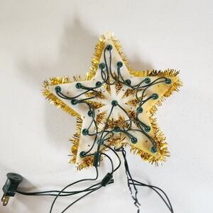 Vintage Star Light Gold Tree Topper Santa Lites Christmas Decor Lights In Box