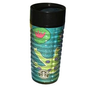 Vintage Starbucks 1999 Ribbed Coffee Travel Tumbler Frogs & Lily Pads