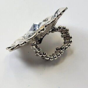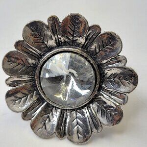 Huge Crystal and Silver Tone Flower Stretch Ring